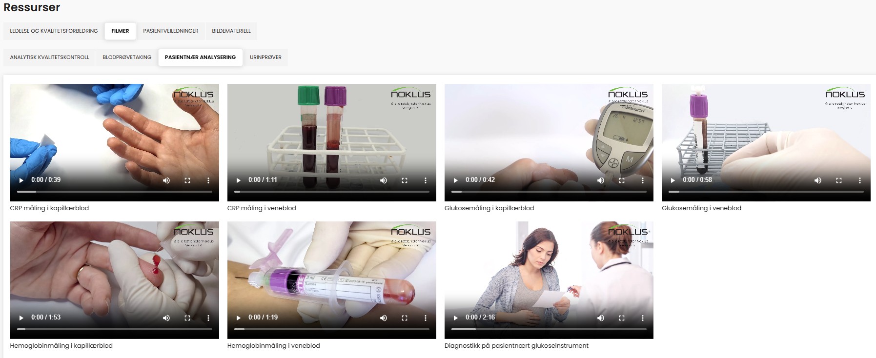 Filmene viser både venøs og kapillær prøvetaking, analyse av ekstern kontroll og registrering av interne kontrollresultater.